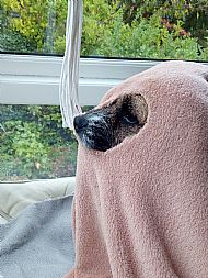 ps holes in fleecy blanket fashioned by Hector-the-pup